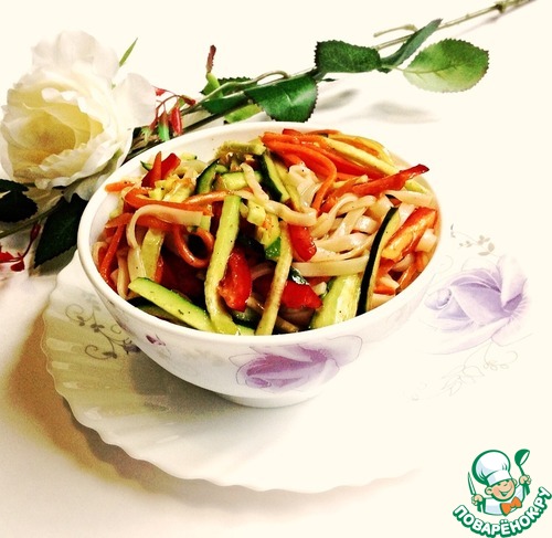 | Оригинальный, вкусный и пикантный салат из рисовой лапши с овощами и пикантной корейской морковью. Впечатляющий и не избитый. |