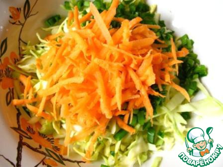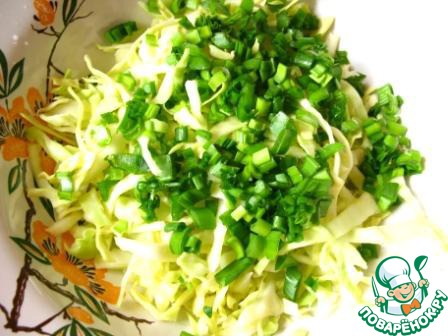 Зеленый лук нарезать и добавить к капусте.