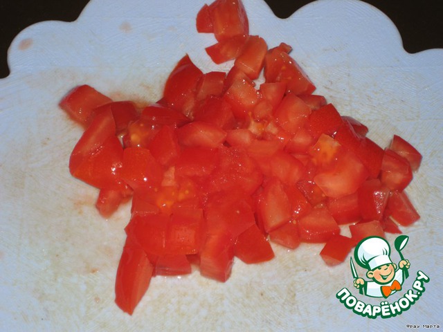 Помидор режем кубиками.
