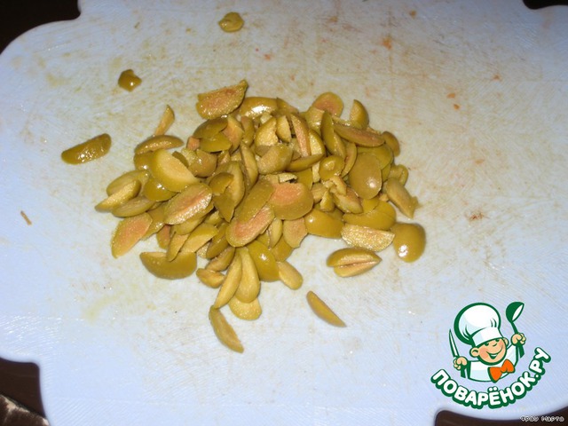 Зеленые оливки полосочками.