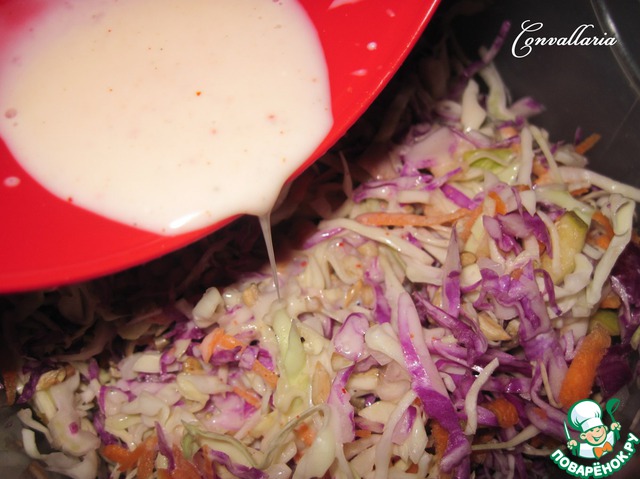 | Cole Slaw. Вариантов этого салат существует множество. На сайте видела 6 вариантов приготовления салата "Коул Слоу", но именно этот рецепт – самый любимый, неоднократно опробованный на себе и близких. Рецепт соуса для салата взят у Lena Lawson. |