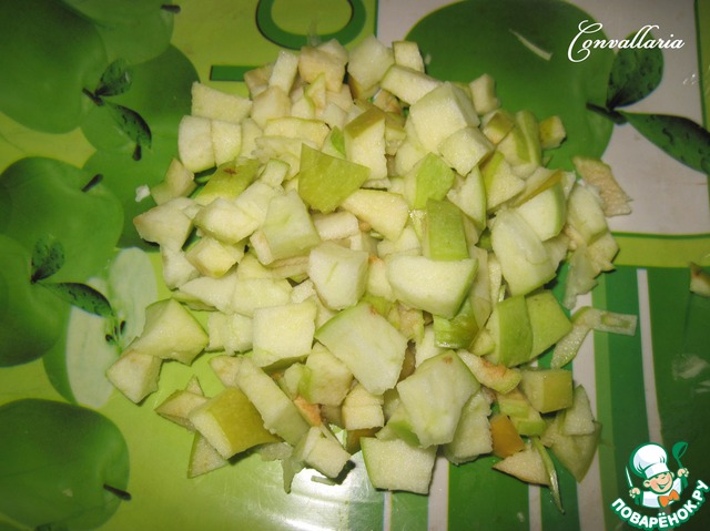 Яблоки нарезать кубиками или натереть на крупной терке.