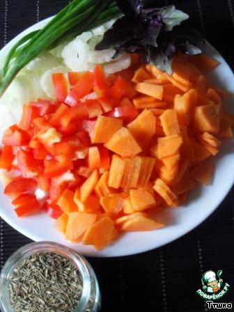 Нарезать очищенную и вымытую морковь, сельдерей и болгарский перец.