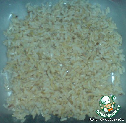 Берем отваренный коричневый рис. С белым может будет тоже ничего, но мне кажется коричневый рис здесь лучше, притом это не основной ингредиент.