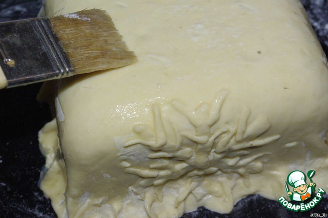 Смазываем яйцом и делаем проколы вилкой или ножом по всей поверхности теста.