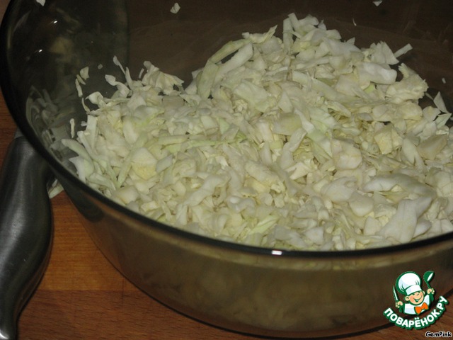 Капусту мелко нашинковать.