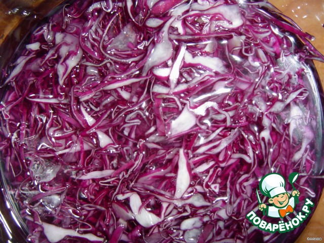 5. Свеклу сразу заправьте частью соуса и выдержите 10 мин. , не смешивая с остальными овощами, чтобы избежать их окрашивания.