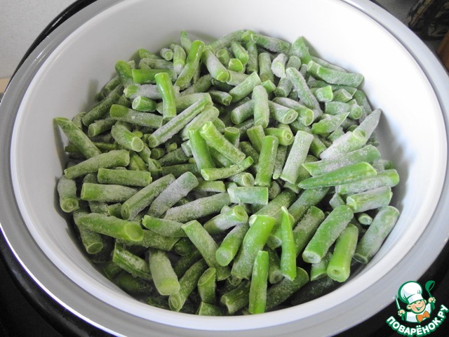 Фасоль отвариваем на парУ в течение восьми минут. Я это делаю в мультиварке.