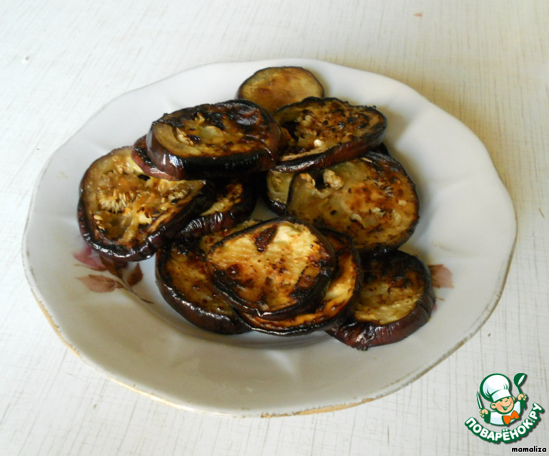 Баклажаны обжарить на оливковом масле, выложить на бумажное полотенце для удаления лишнего жира.