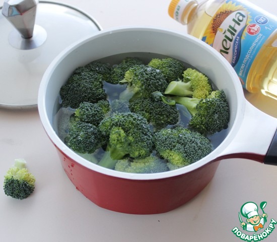 Брокколи разделить на соцветия и отварить в течение 2 минут.