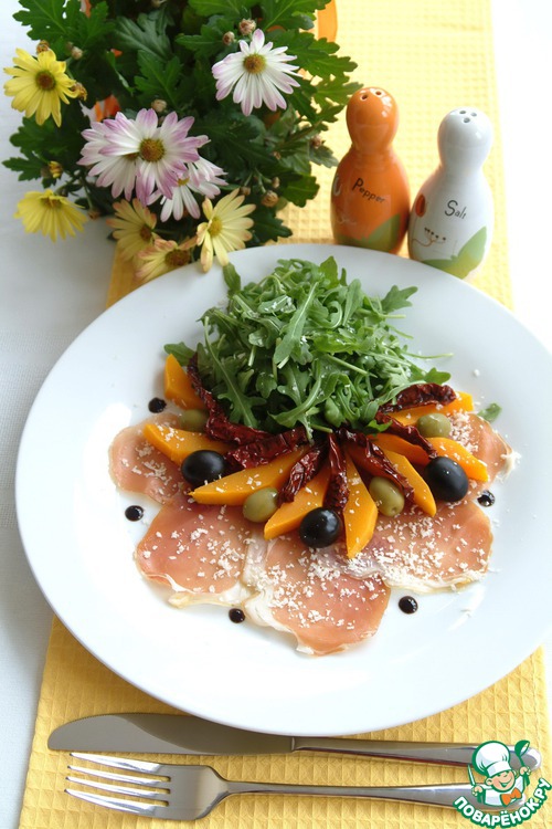 Салат из тыквы с рукколой, пармской ветчиной и пармезаном