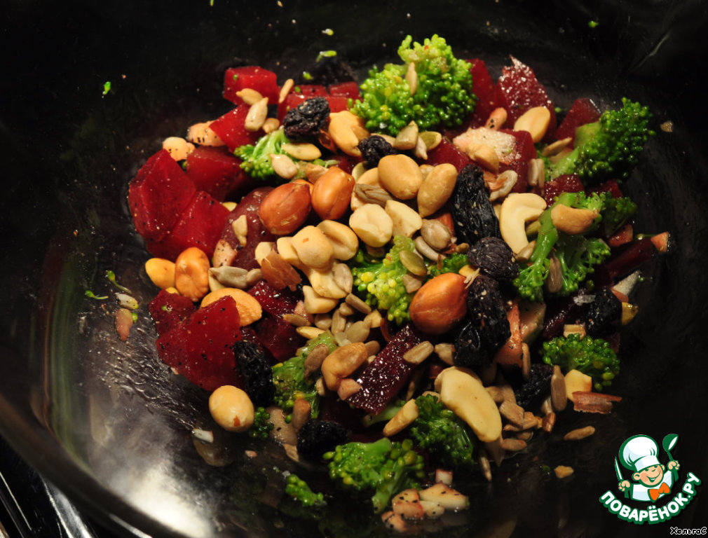 Последним штрихом добавим орехи любые, изюм и клюкву сушеную.