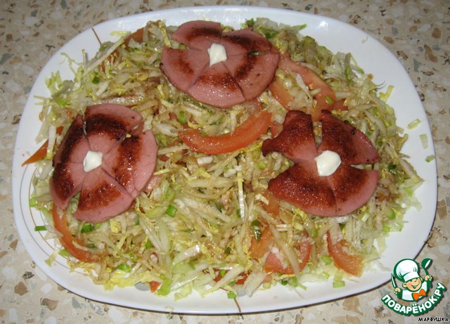 Посмотрела я на салатик, и что-то очень захотелось мне его украсить цветочками из колбаски. ;-)