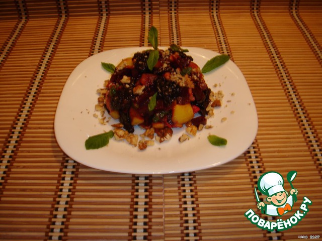 | Салат для любителей свеклы и фруктов . На вкус кисло сладкий с ароматом мяты. |