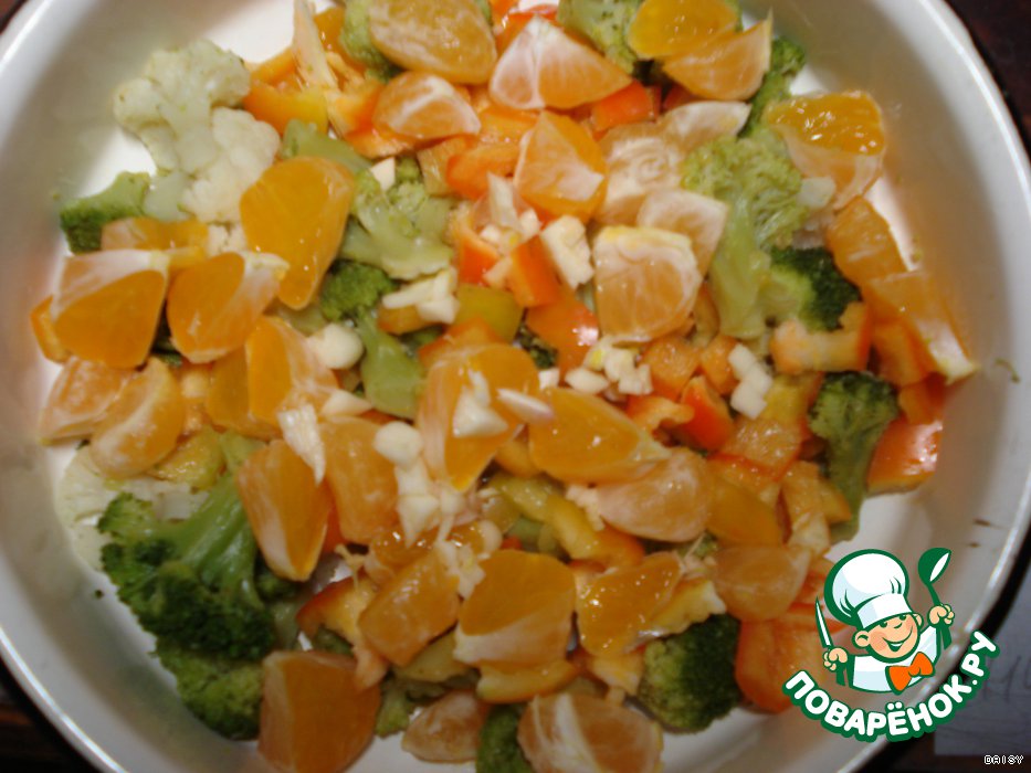 Апельсин лучше очистить от пленки и нарезать, перец нарезать кубиками, сыр натереть на терке.
