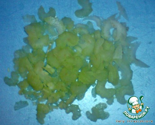 Режем стебли сельдерея тонкими колечками. Добавляем к капусте.