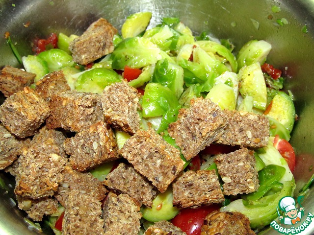 Салат остается вкусным, даже когда постоит и кусочки хлеба станут мягкими (на мой взгляд, это еще вкуснее