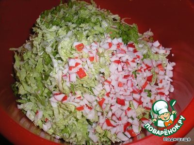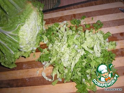 Нарезаем пекинскую капусту,