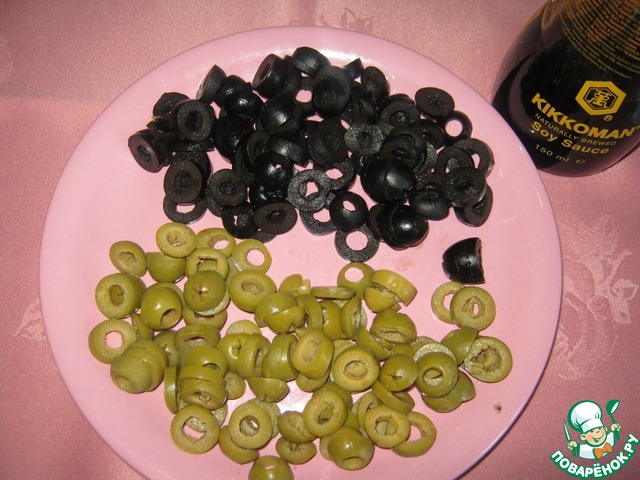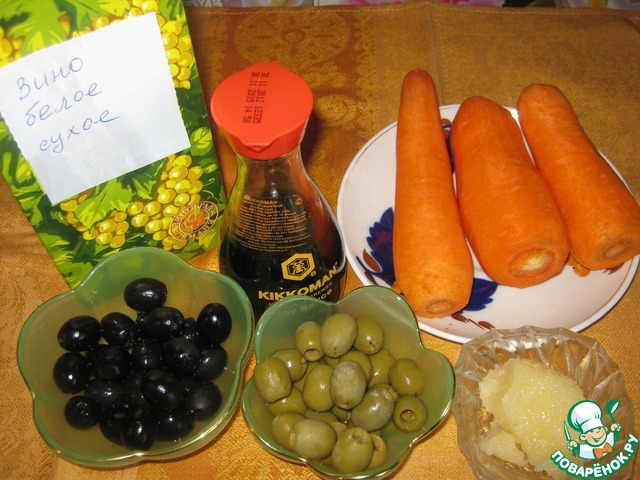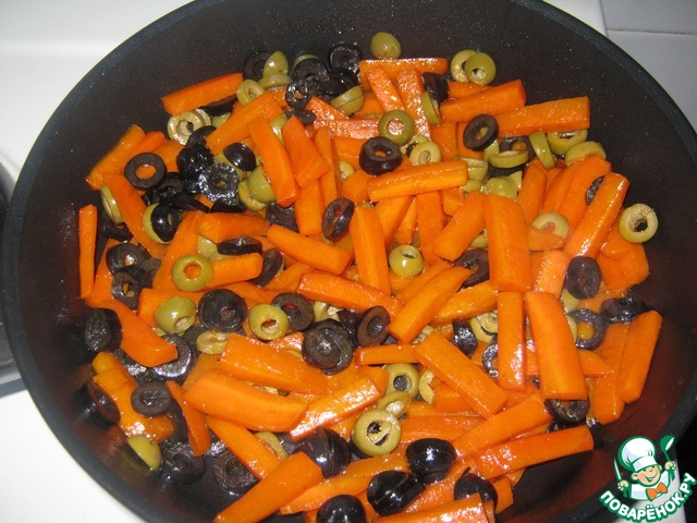 Добавить оливки к моркови и прогреть 1-2 минуты, снять с огня.