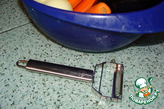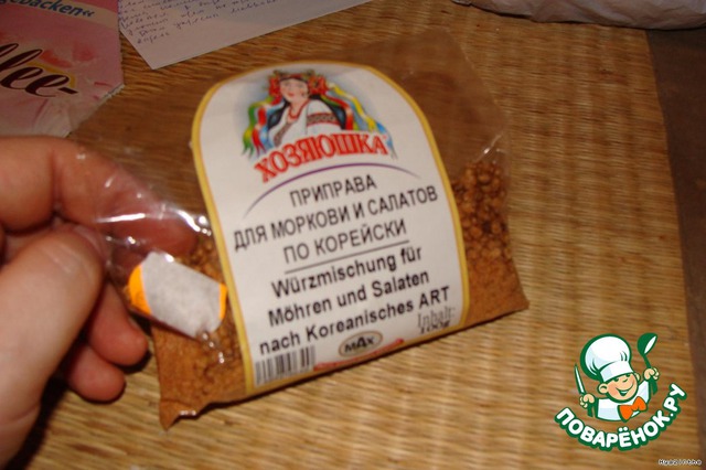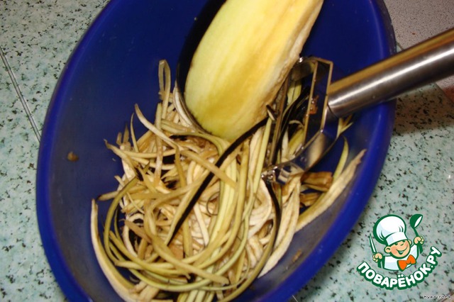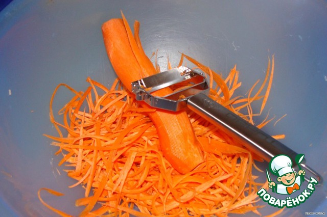 | Всем известная корейская морковча, только с добавлением баклажана. Купила новый нож для овощей, очень хотелось опробовать, вот и получился этот салат. |