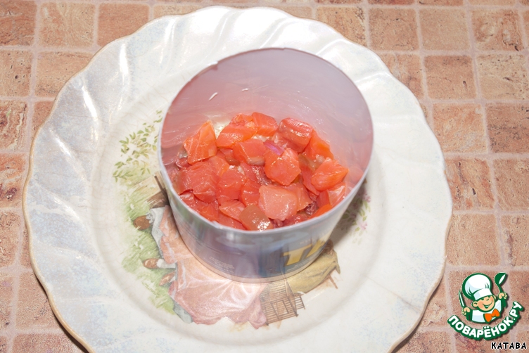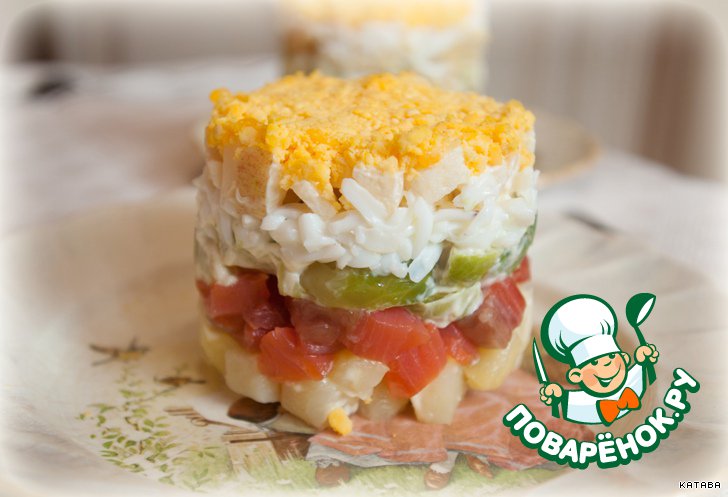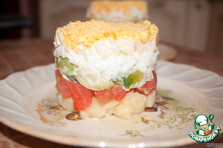 Аккуратно снимаем "девайс" - наш красивенький и вкусненький салатик готов! Приятного аппетита!