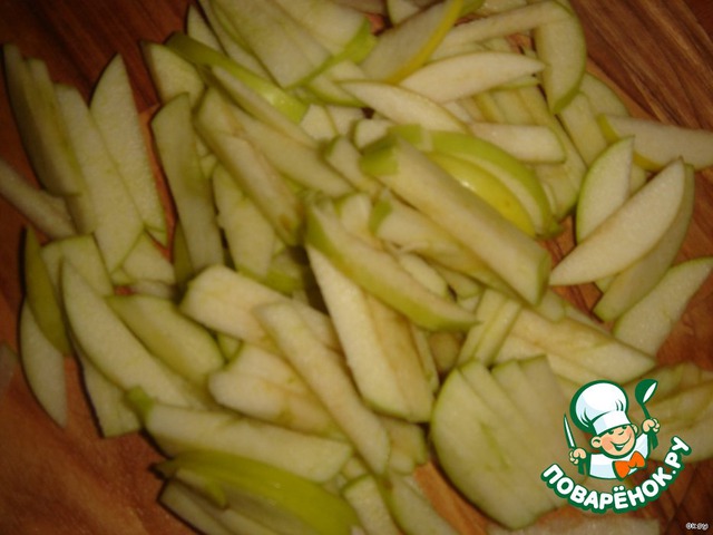 Яблоки очистить от плодоножек и нашинковать соломкой.
