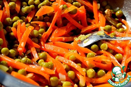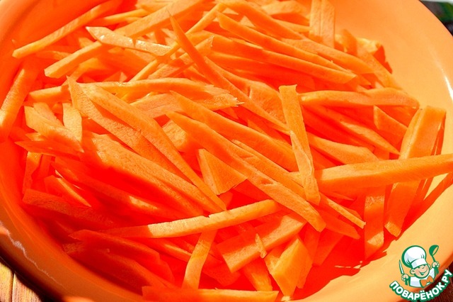 Измельчаем лук. Под крышкой в масле тушим их вместе до готовности моркови