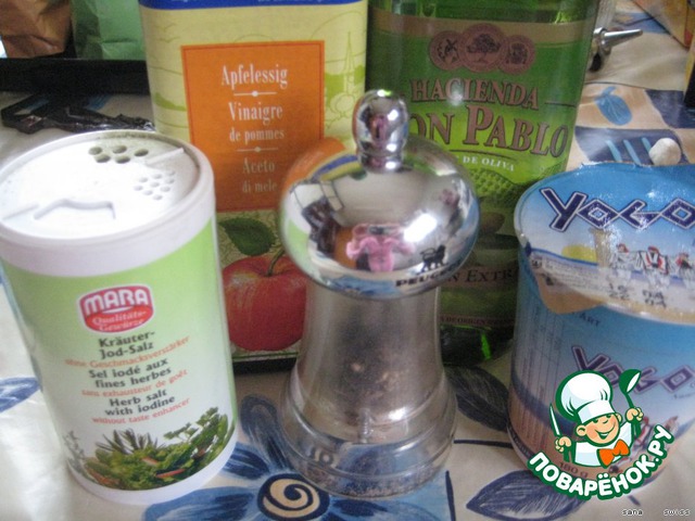 [color=red]Соус:[/color] йогурт натуральный, оливковое масло, яблочный уксус, специи салатные (зелень), чеснок, соль, перец...