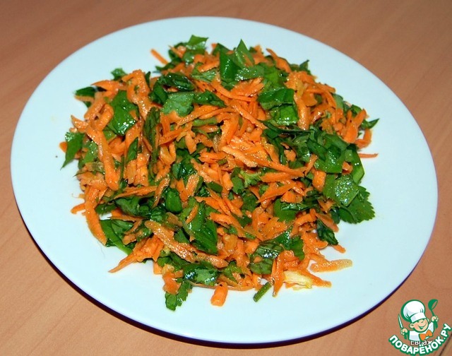 Манжетку, щавель нарезать, морковь - на тёрку, чеснок - через чесночницу.