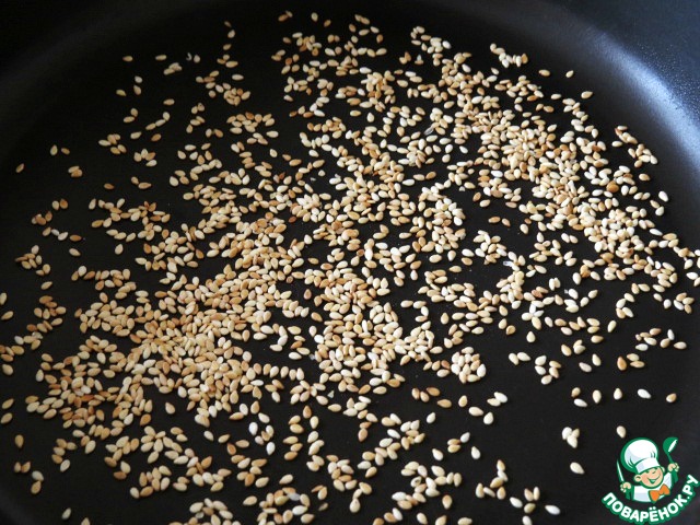 Семена кунжута обжариваем на сковороде до лёгкой золотистости.