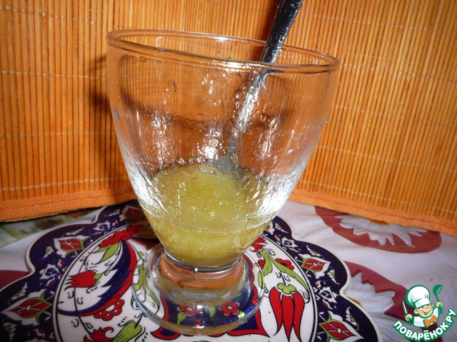 В стакане смешиваем около 1 ст. л. лимонного сока, оливковое масло и соль. Поливаем наш салат.