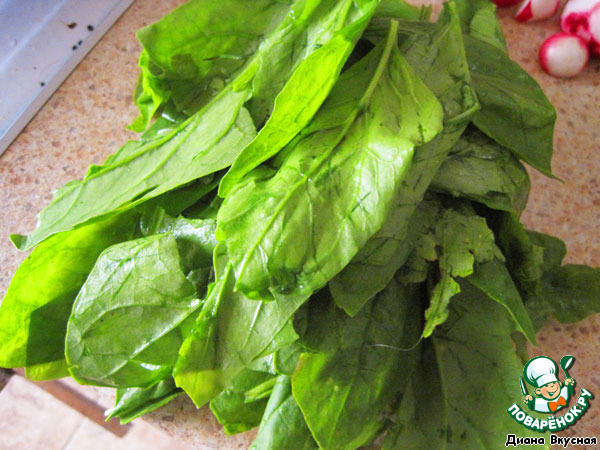 Поджарила на растительном масле лук-порей и добавила шпинат (готов, когда станет светлее (салатого цвета примерно)).