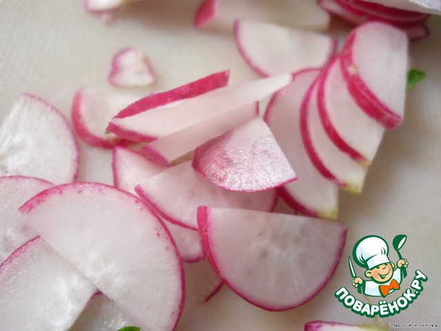Редис нарезать тонкими полукольцами