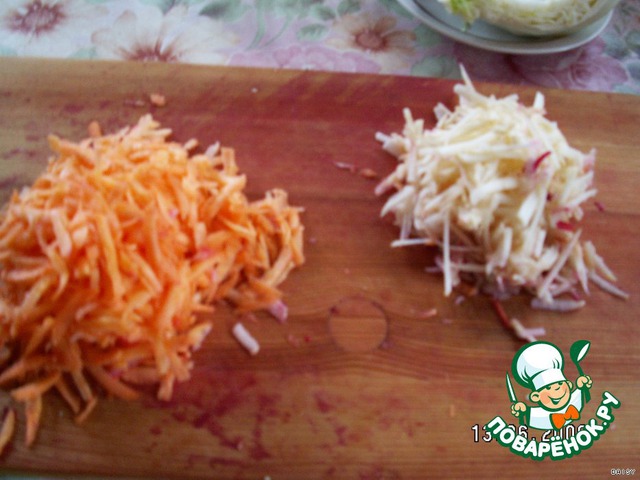 Морковь и очищенное яблоко потереть на крупной терке.