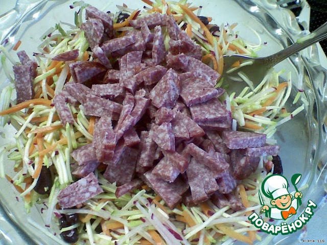 Колбасу порезать соломкой.