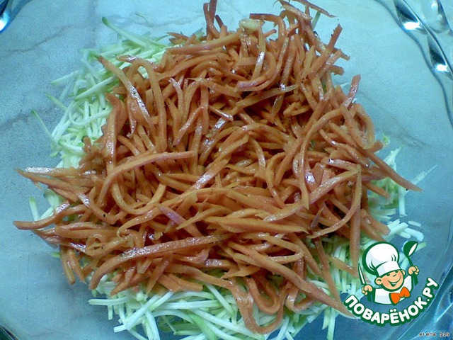 Готовую корейскую морковку мелко порезать.