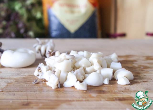 * У меня вместо кальмаров маленькие каракатицы. Мне нравится их плотная структура и "хрусткость".