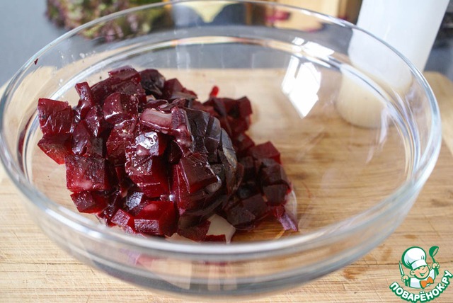 * Свекла заправляется первой, чтобы частично предотвратить окрашивание других продуктов.