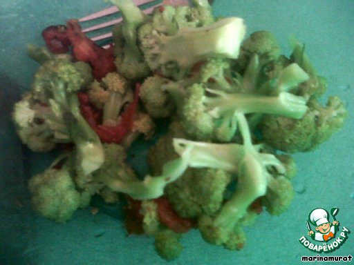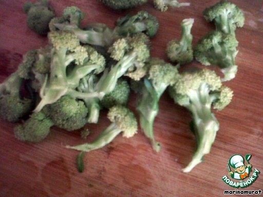 Брокколи моем, разделяем на небольшие соцветия и отвариваем в кипящей воде 2 минуты!!! Не больше!!!