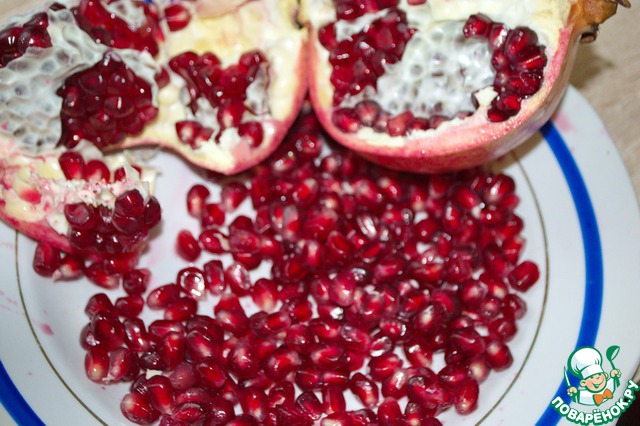 Займемся соусом. Гранат почистим. Половина зернышек пойдет на соус, остальная в салат.