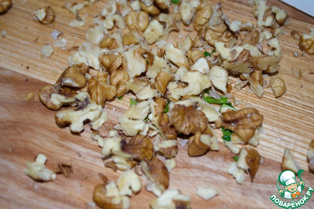 Из половины граната, надо выжать сок, я засыпала их в ступку, добавила чеснок и соль.