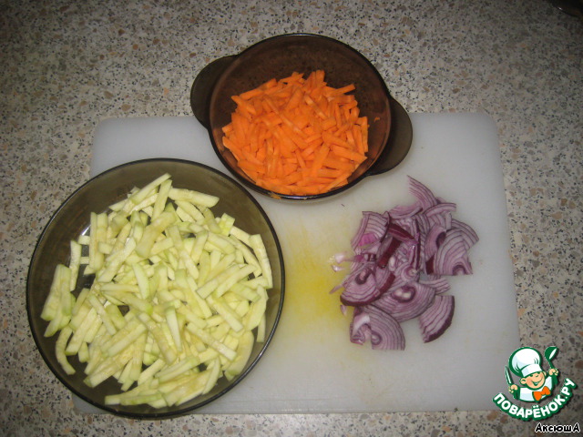 Кабачки и морковь нарезаем соломкой.