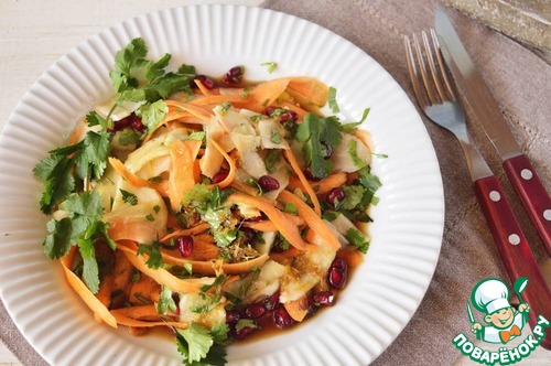 Соединяем топинамбур и морковь, посыпаем зернами граната.