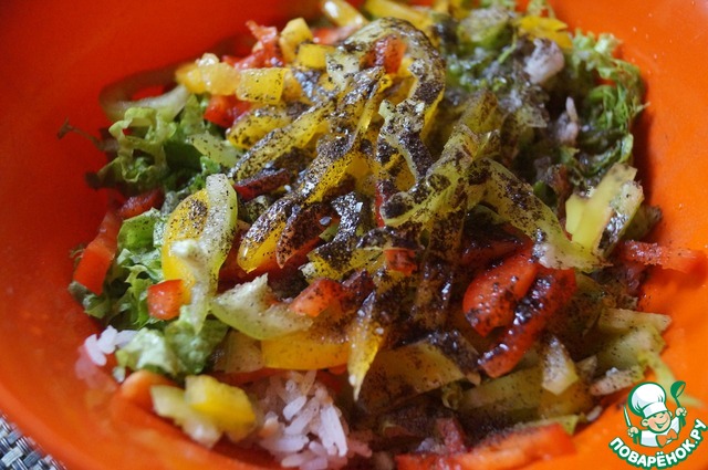 Рис отвариваем в подсоленной воде по инструкции на упаковке. После этого - охлаждаем.
