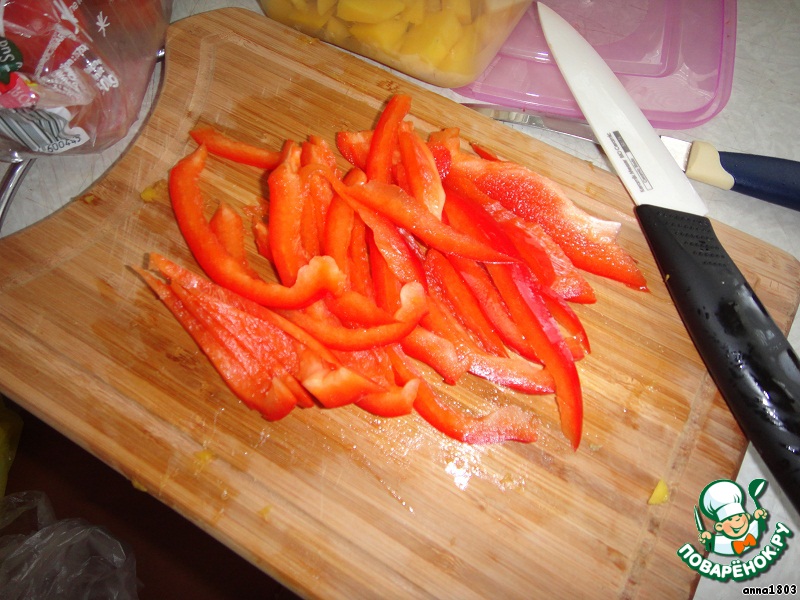 2. Перец нарезаем тонкой соломкой.