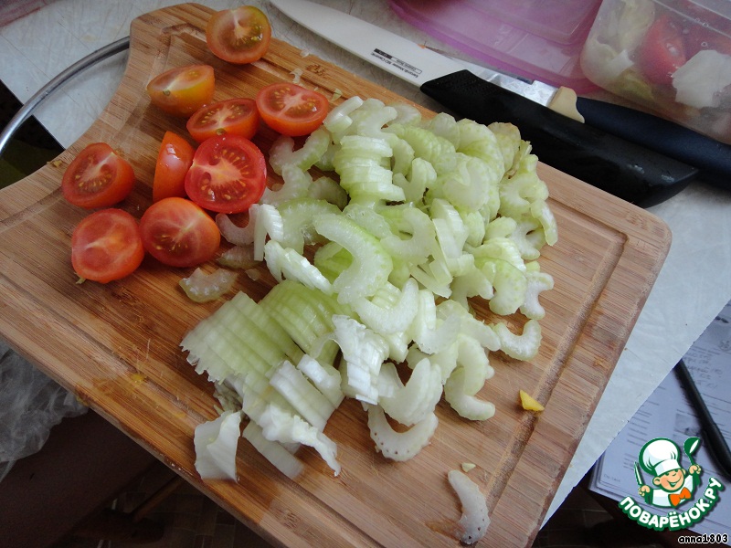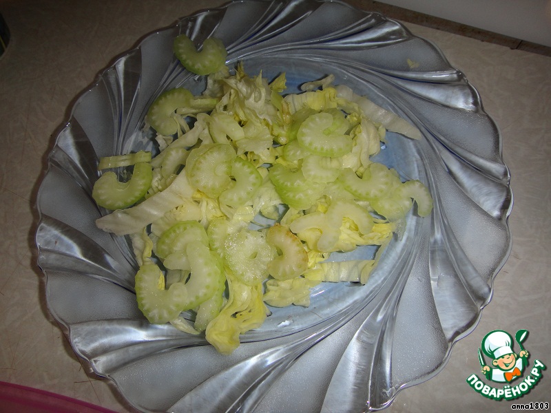 5. Сельдерей - тонкими ломтиками.