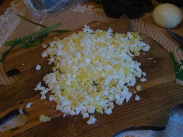 • Сверху украшаем помидором, укропом, горохом, морковью и красной икрой.