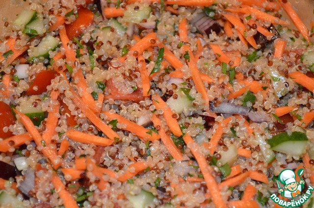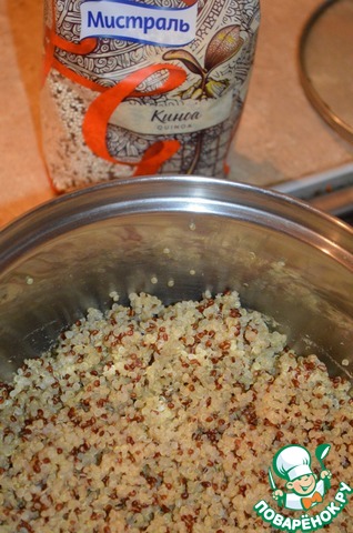 Киноа залить водой, довести до кипения, накрыть крышкой и бавить огонь. Готовить 15 минут. Готовый киноа взбить вилкой.