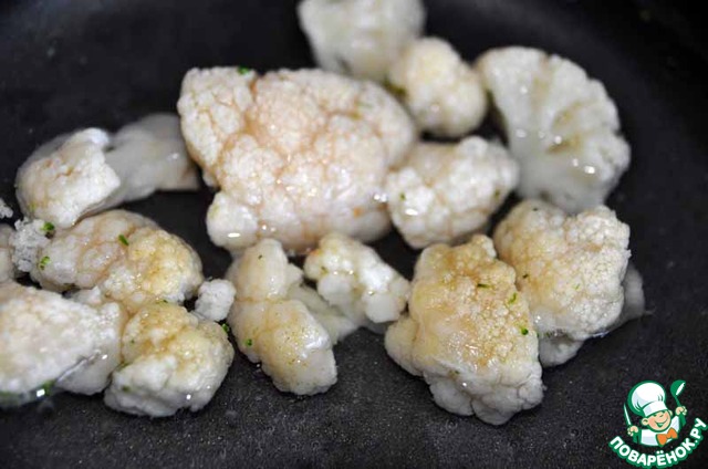 Берём цветную капусту, если свежая, то разделяем на соцветия, если замороженная, то просто кладём в подсоленную кипящую воду и варим 3 минуты.