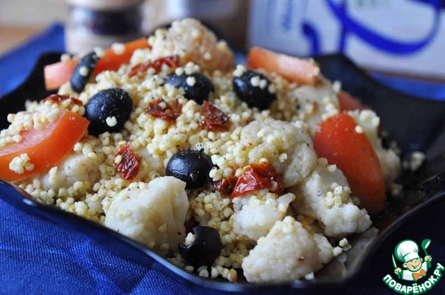 Острый салат с пшеном и цветной капустой